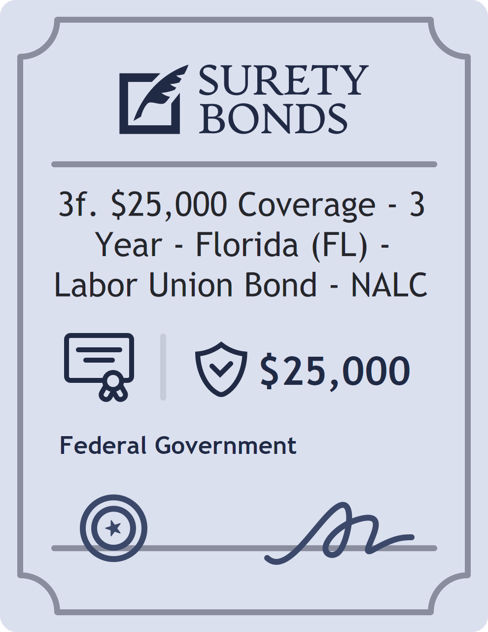 3f. $25,000 Coverage – 3 Year – Florida (FL) – Labor Union Bond – NALC Bond