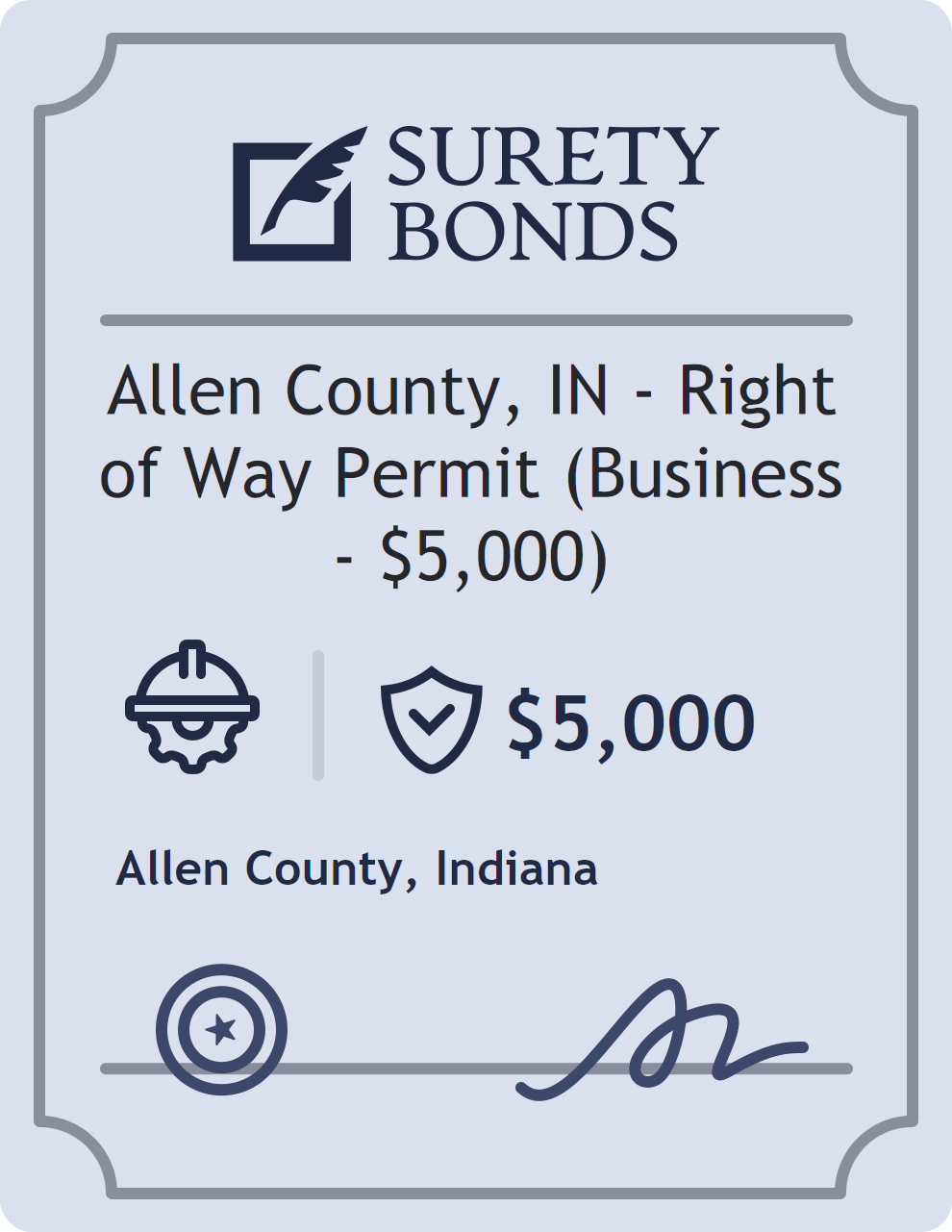 Allen County, IN – Right of Way Permit (Business – $5,000) Bond