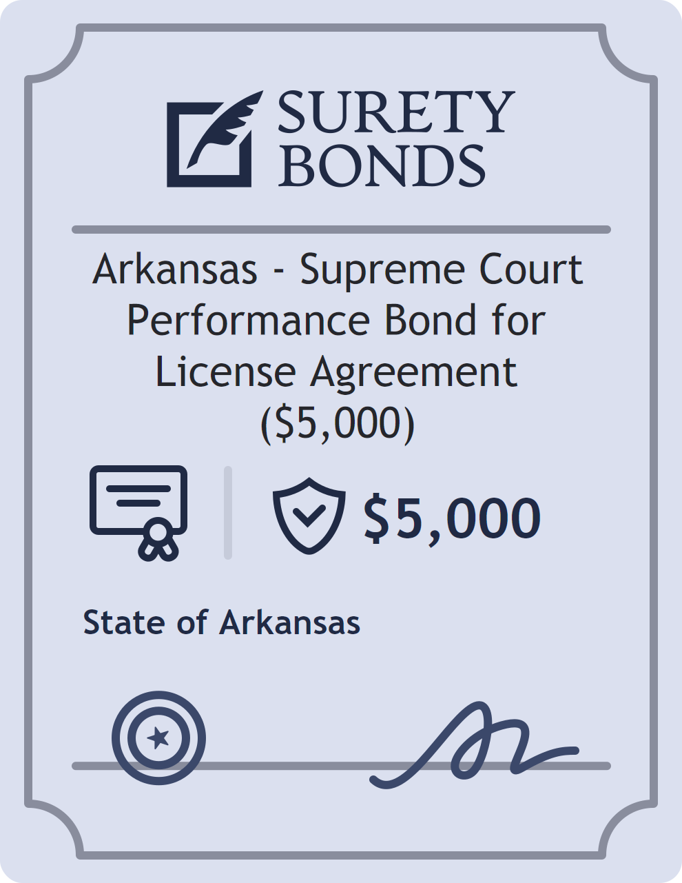 Arkansas – Supreme Court Performance Bond for License Agreement ($5,000) Bond