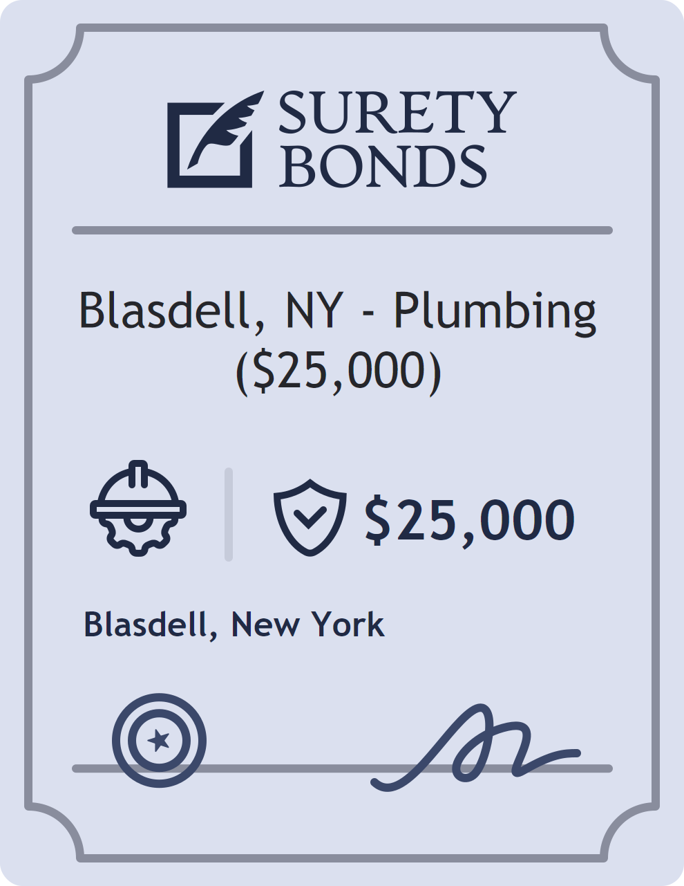 The Blasdell, NY – Plumbing ($25,000) is classified as a Contractor Bonds with a $25,000 obligation in New York. Contractor Bonds are surety bonds required for individuals or businesses performing construction work. They guarantee that contractors will comply with building codes, licensing requirements, and contractual obligations. The bond provides financial protection to property owners and the public in cases of poor workmanship, regulatory violations, or unfinished work. The surety reviews financial strength, compliance history, and indemnity support before approving the obligation. Maintaining uninterrupted coverage for the entire 1 Year term is essential; lapses can trigger penalties, contract defaults, or license suspension in New York. Underwriters typically request financial statements, references, and proof of licensing before quoting terms so they can evaluate repayment capacity. Throughout the bond term, the principal must maintain accurate books, respond to regulator inquiries, and remediate any complaints to prevent a claim. Many authorities in New York also require renewal certificates 30 to 60 days in advance, and failure to provide proof can halt permitting or bid submissions. The $25,000 limit demonstrates to customers, partners, and oversight agencies that the bonded party maintains a reliable, surety-backed source of funds dedicated to ongoing compliance. The obligee for this bond is Blasdell.