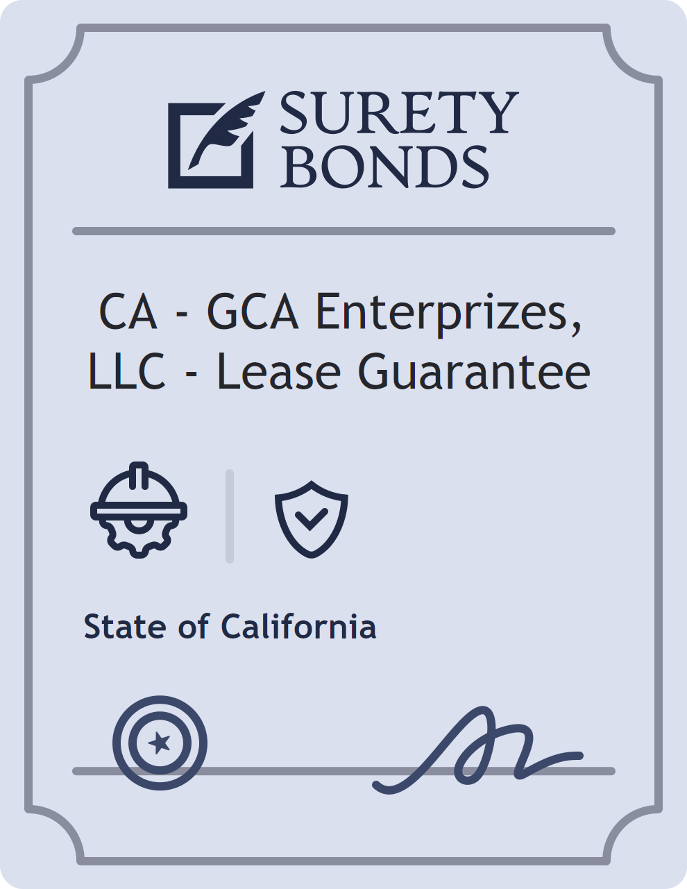 CA – GCA Enterprizes, LLC – Lease Guarantee Bond