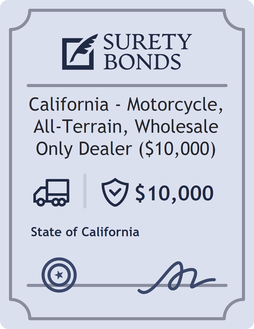 California – Motorcycle, All-Terrain, Wholesale Only Dealer ($10,000) Bond