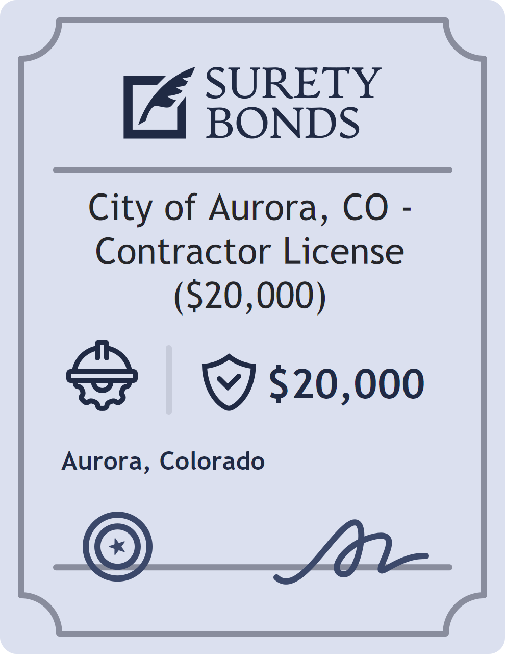 City of Aurora, CO – Contractor License ($20,000) Bond