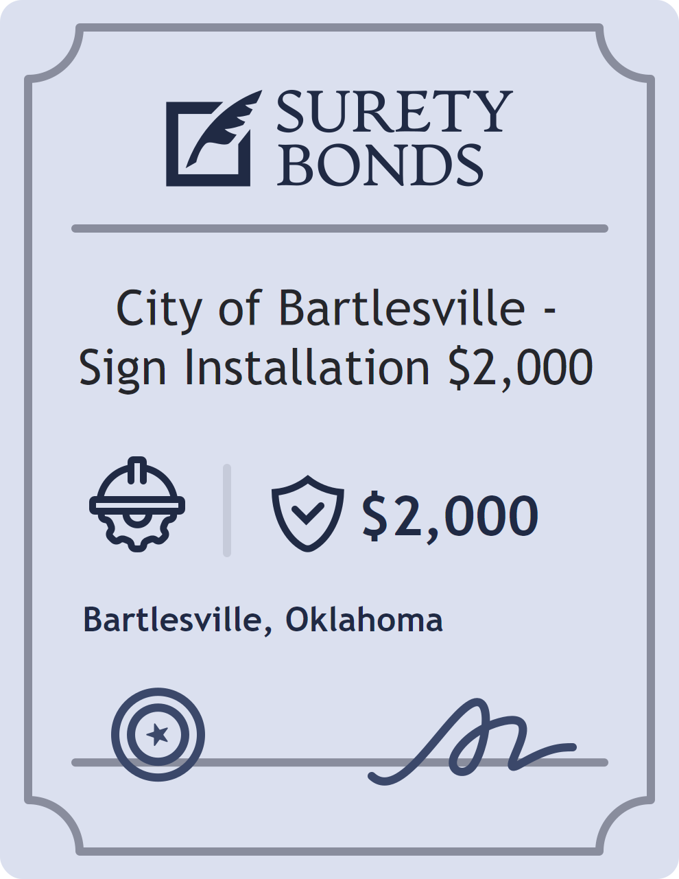 City of Bartlesville – Sign Installation $2,000 Bond