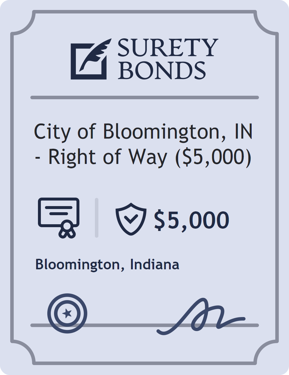 City of Bloomington, IN – Right of Way ($5,000) Bond