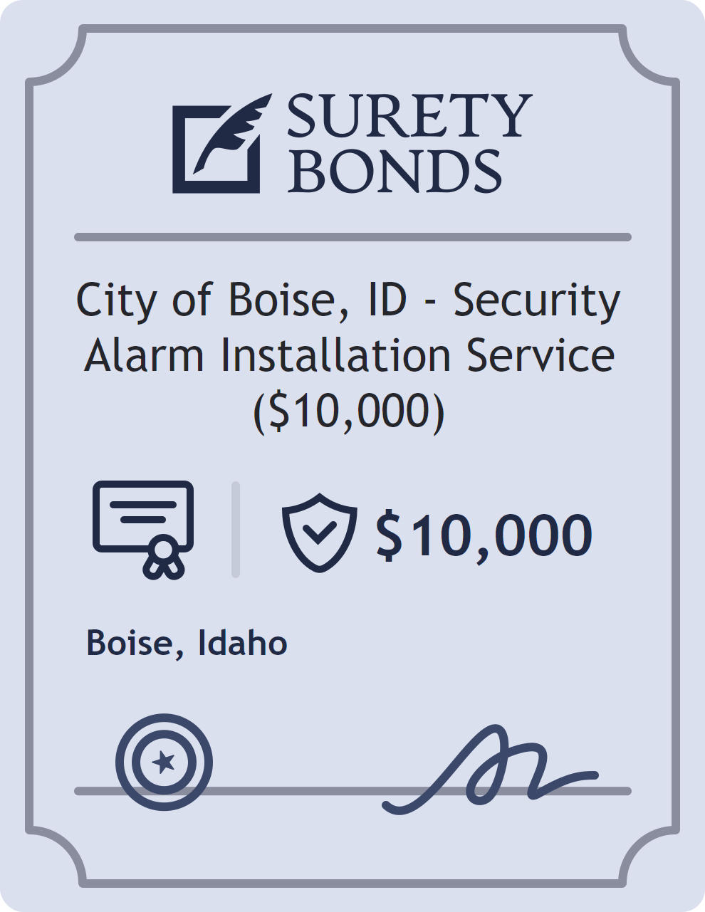 City of Boise, ID – Security Alarm Installation Service ($10,000) Bond