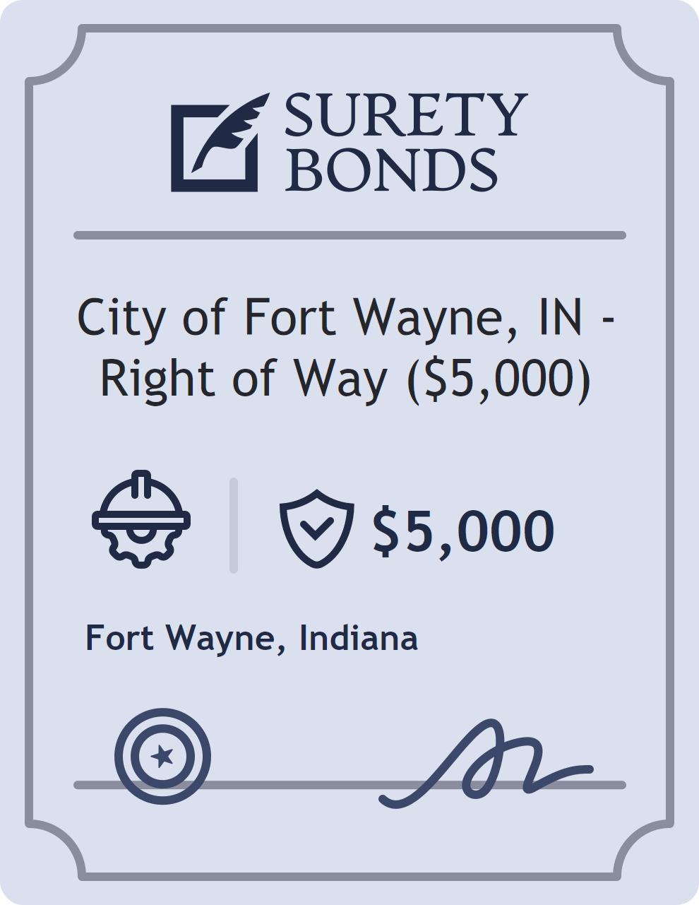 City of Fort Wayne, IN – Right of Way ($5,000) Bond