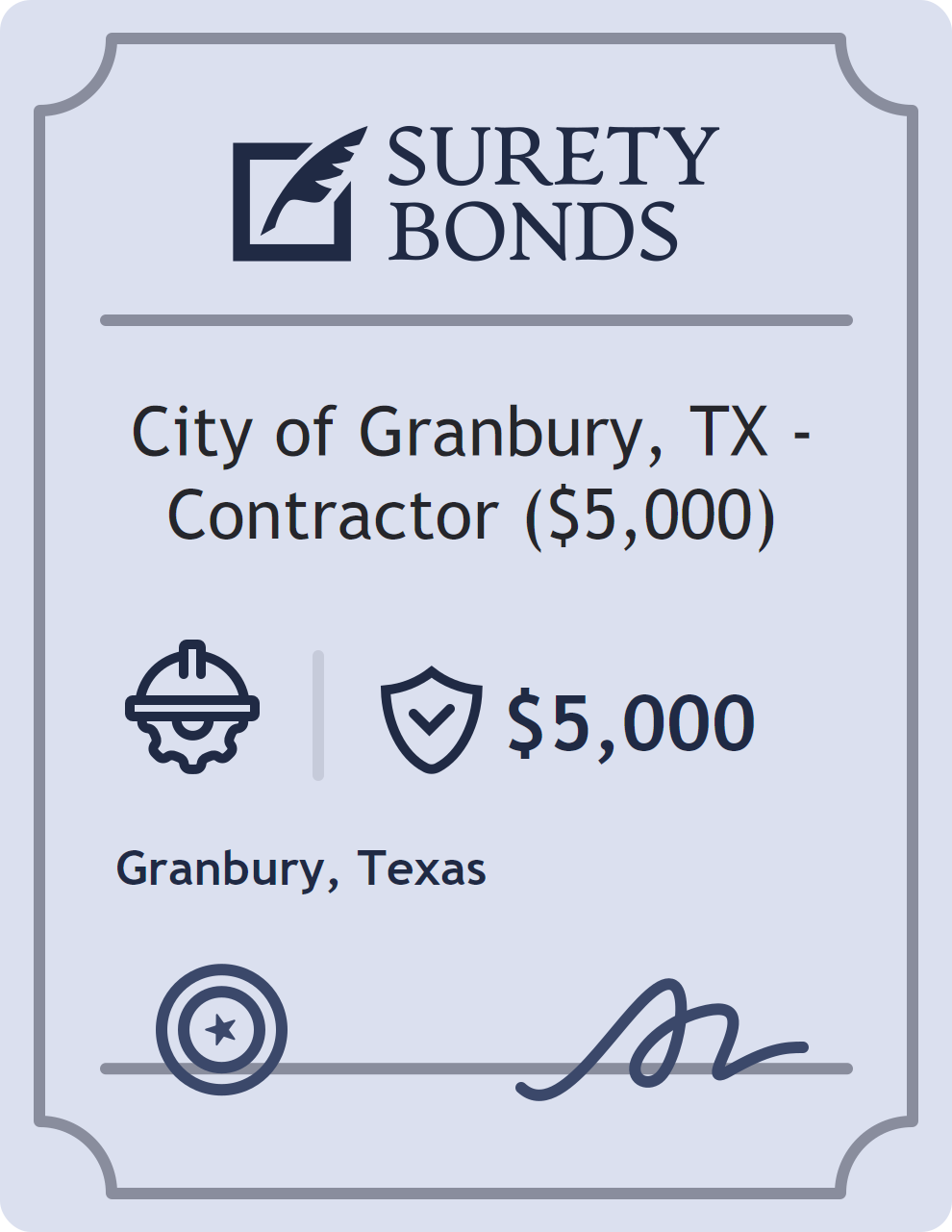 City of Granbury, TX – Contractor ($5,000) Bond