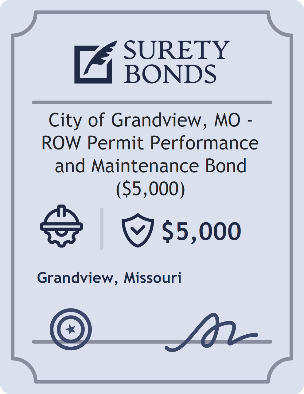 City of Grandview, MO – ROW Permit Performance and Maintenance Bond ($5,000) Bond