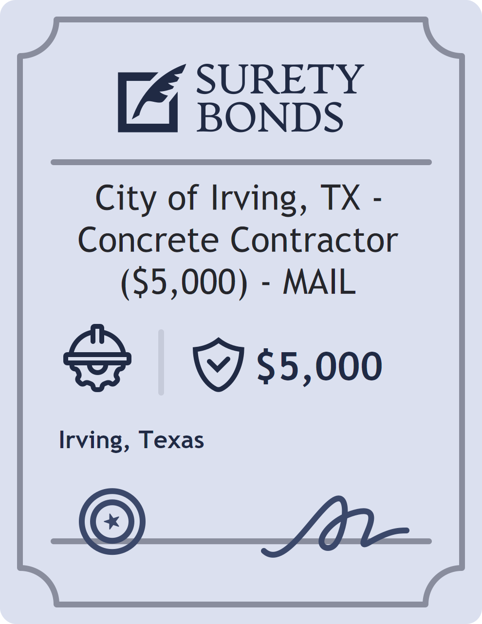 City of Irving, TX – Concrete Contractor ($5,000) – MAIL Bond