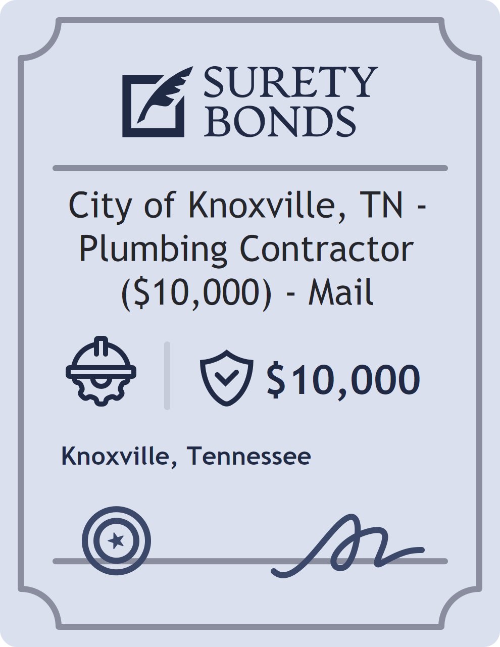 City of Knoxville, TN – Plumbing Contractor ($10,000) – Mail Bond