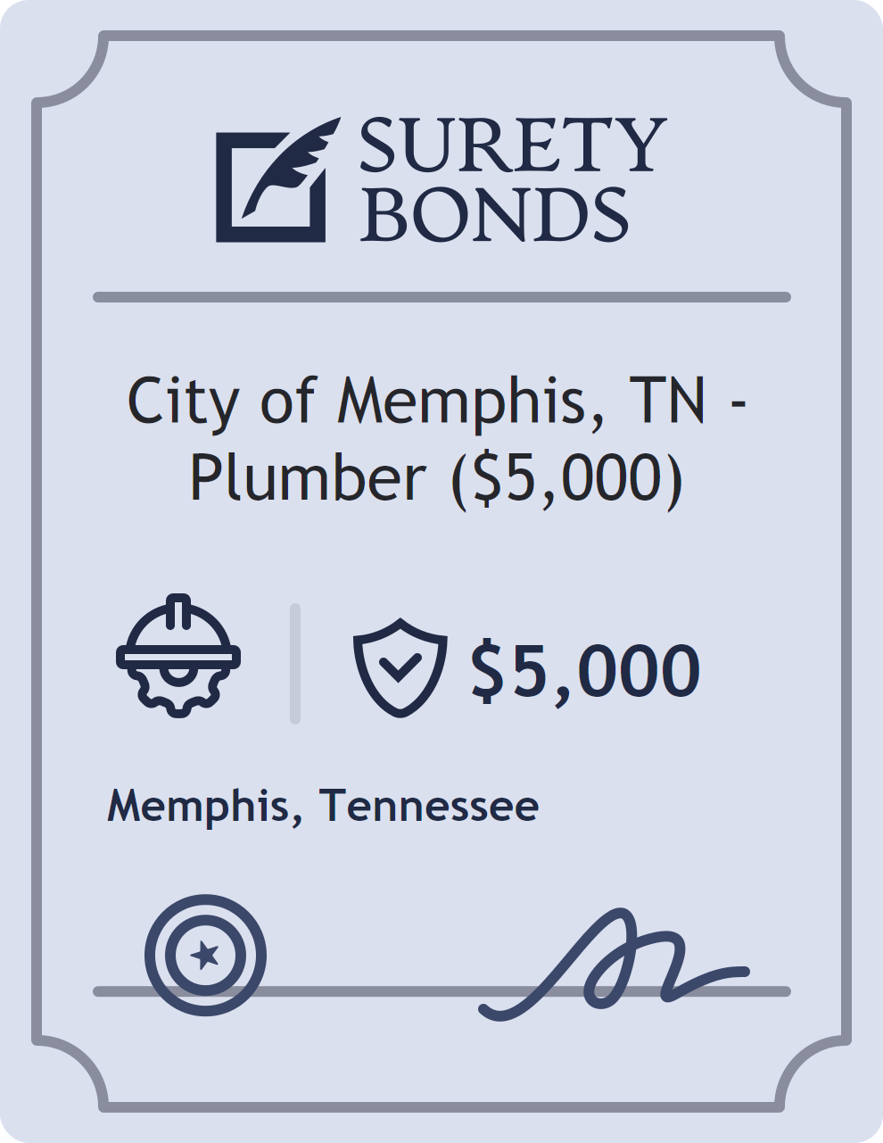 The City of Memphis, TN – Plumber ($5,000) is classified as a Contractor Bonds with a $5,000 obligation in Tennessee. Contractor Bonds are surety bonds required for individuals or businesses performing construction work. They guarantee that contractors will comply with building codes, licensing requirements, and contractual obligations. The bond provides financial protection to property owners and the public in cases of poor workmanship, regulatory violations, or unfinished work. The surety reviews financial strength, compliance history, and indemnity support before approving the obligation. Maintaining uninterrupted coverage for the entire 1 Year term is essential; lapses can trigger penalties, contract defaults, or license suspension in Tennessee. Underwriters typically request financial statements, references, and proof of licensing before quoting terms so they can evaluate repayment capacity. Throughout the bond term, the principal must maintain accurate books, respond to regulator inquiries, and remediate any complaints to prevent a claim. Many authorities in Tennessee also require renewal certificates 30 to 60 days in advance, and failure to provide proof can halt permitting or bid submissions. The $5,000 limit demonstrates to customers, partners, and oversight agencies that the bonded party maintains a reliable, surety-backed source of funds dedicated to ongoing compliance. The obligee for this bond is Memphis.