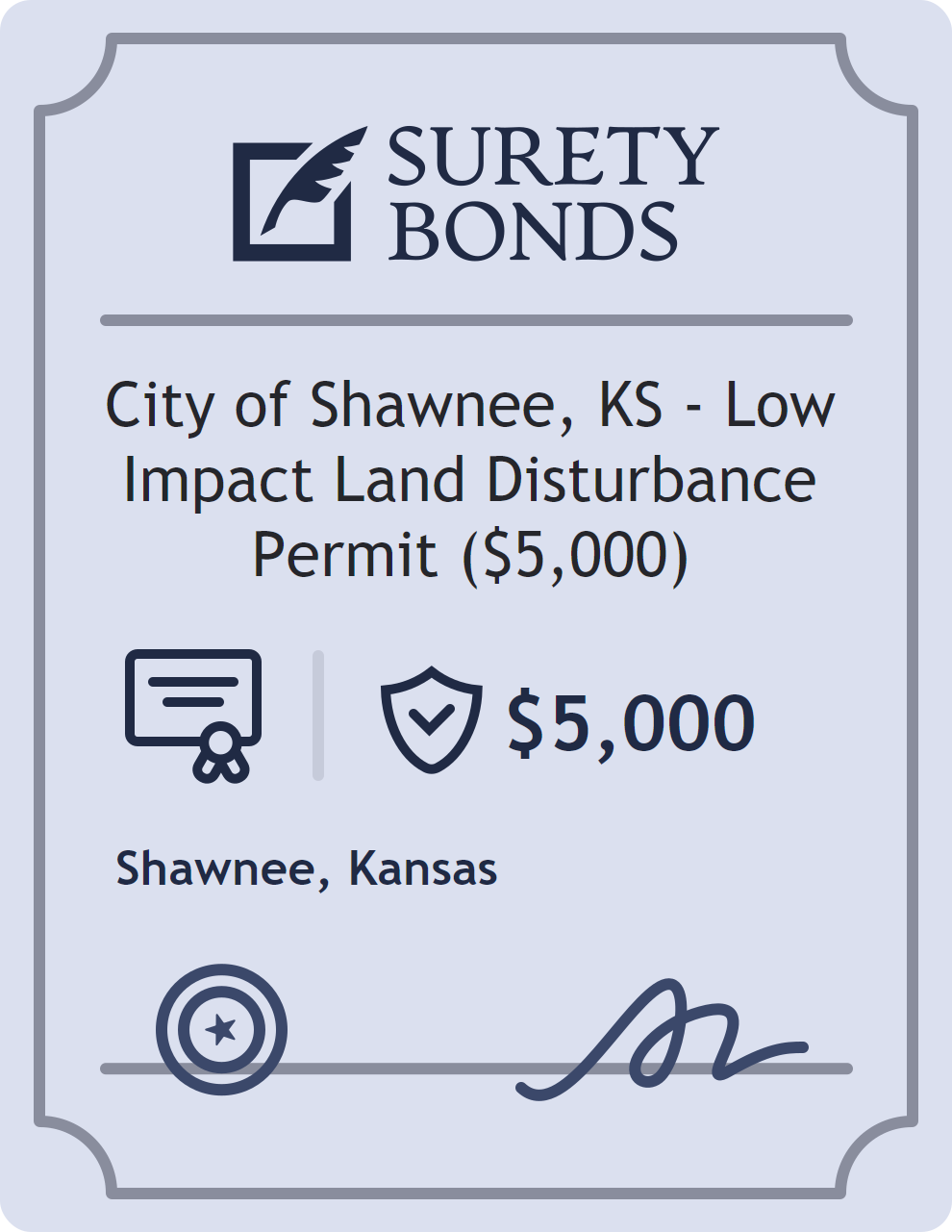 City of Shawnee, KS – Low Impact Land Disturbance Permit ($5,000) Bond
