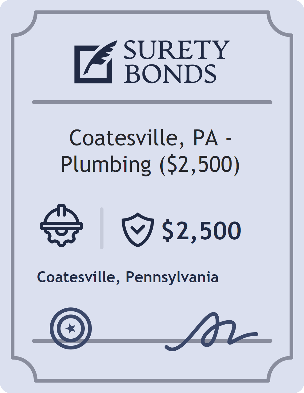 The Coatesville, PA – Plumbing ($2,500) is classified as a Contractor Bonds with a $2,500 obligation in Pennsylvania. Contractor Bonds are surety bonds required for individuals or businesses performing construction work. They guarantee that contractors will comply with building codes, licensing requirements, and contractual obligations. The bond provides financial protection to property owners and the public in cases of poor workmanship, regulatory violations, or unfinished work. The surety reviews financial strength, compliance history, and indemnity support before approving the obligation. Maintaining uninterrupted coverage for the entire 1 Year term is essential; lapses can trigger penalties, contract defaults, or license suspension in Pennsylvania. Underwriters typically request financial statements, references, and proof of licensing before quoting terms so they can evaluate repayment capacity. Throughout the bond term, the principal must maintain accurate books, respond to regulator inquiries, and remediate any complaints to prevent a claim. Many authorities in Pennsylvania also require renewal certificates 30 to 60 days in advance, and failure to provide proof can halt permitting or bid submissions. The $2,500 limit demonstrates to customers, partners, and oversight agencies that the bonded party maintains a reliable, surety-backed source of funds dedicated to ongoing compliance. The obligee for this bond is Coatesville.
