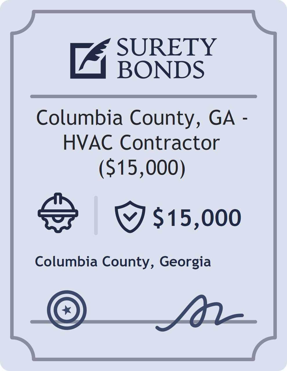 The Columbia County, GA – HVAC Contractor ($15,000) is classified as a Contractor Bonds with a $15,000 obligation in Georgia. Contractor Bonds are surety bonds required for individuals or businesses performing construction work. They guarantee that contractors will comply with building codes, licensing requirements, and contractual obligations. The bond provides financial protection to property owners and the public in cases of poor workmanship, regulatory violations, or unfinished work. The surety reviews financial strength, compliance history, and indemnity support before approving the obligation. Maintaining uninterrupted coverage for the entire 1 Year term is essential; lapses can trigger penalties, contract defaults, or license suspension in Georgia. Underwriters typically request financial statements, references, and proof of licensing before quoting terms so they can evaluate repayment capacity. Throughout the bond term, the principal must maintain accurate books, respond to regulator inquiries, and remediate any complaints to prevent a claim. Many authorities in Georgia also require renewal certificates 30 to 60 days in advance, and failure to provide proof can halt permitting or bid submissions. The $15,000 limit demonstrates to customers, partners, and oversight agencies that the bonded party maintains a reliable, surety-backed source of funds dedicated to ongoing compliance. The obligee for this bond is Columbia County.