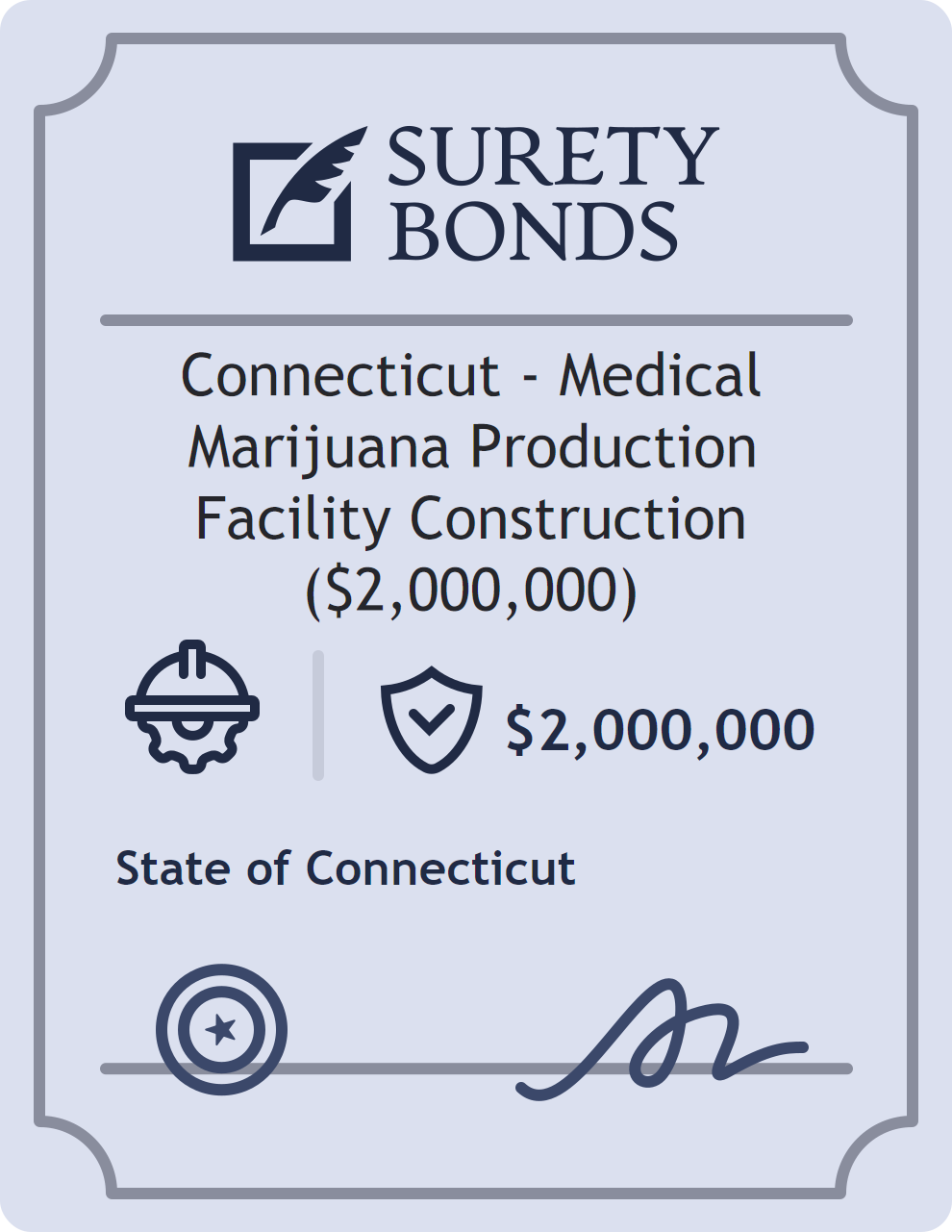 The Connecticut – Medical Marijuana Production Facility Construction ($2,000,000) is classified as a Contractor Bonds with a $2,000,000 obligation in Connecticut. Contractor Bonds are surety bonds required for individuals or businesses performing construction work. They guarantee that contractors will comply with building codes, licensing requirements, and contractual obligations. The bond provides financial protection to property owners and the public in cases of poor workmanship, regulatory violations, or unfinished work. The surety reviews financial strength, compliance history, and indemnity support before approving the obligation. Maintaining uninterrupted coverage for the entire 1 Year term is essential; lapses can trigger penalties, contract defaults, or license suspension in Connecticut. Underwriters typically request financial statements, references, and proof of licensing before quoting terms so they can evaluate repayment capacity. Throughout the bond term, the principal must maintain accurate books, respond to regulator inquiries, and remediate any complaints to prevent a claim. Many authorities in Connecticut also require renewal certificates 30 to 60 days in advance, and failure to provide proof can halt permitting or bid submissions. The $2,000,000 limit demonstrates to customers, partners, and oversight agencies that the bonded party maintains a reliable, surety-backed source of funds dedicated to ongoing compliance. The obligee for this bond is State of Connecticut.