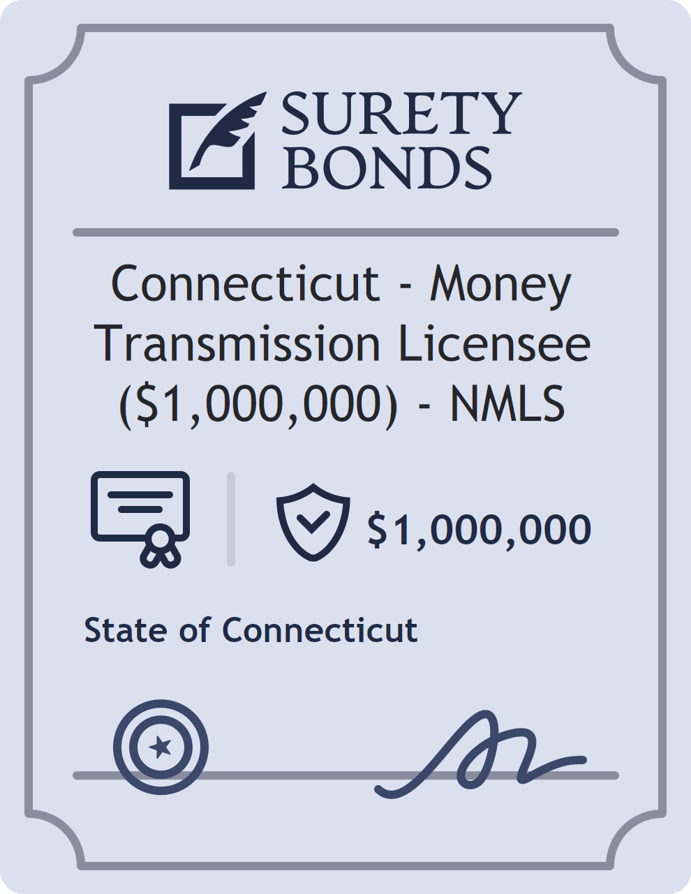 Connecticut – Money Transmission Licensee ($1,000,000) – NMLS Bond