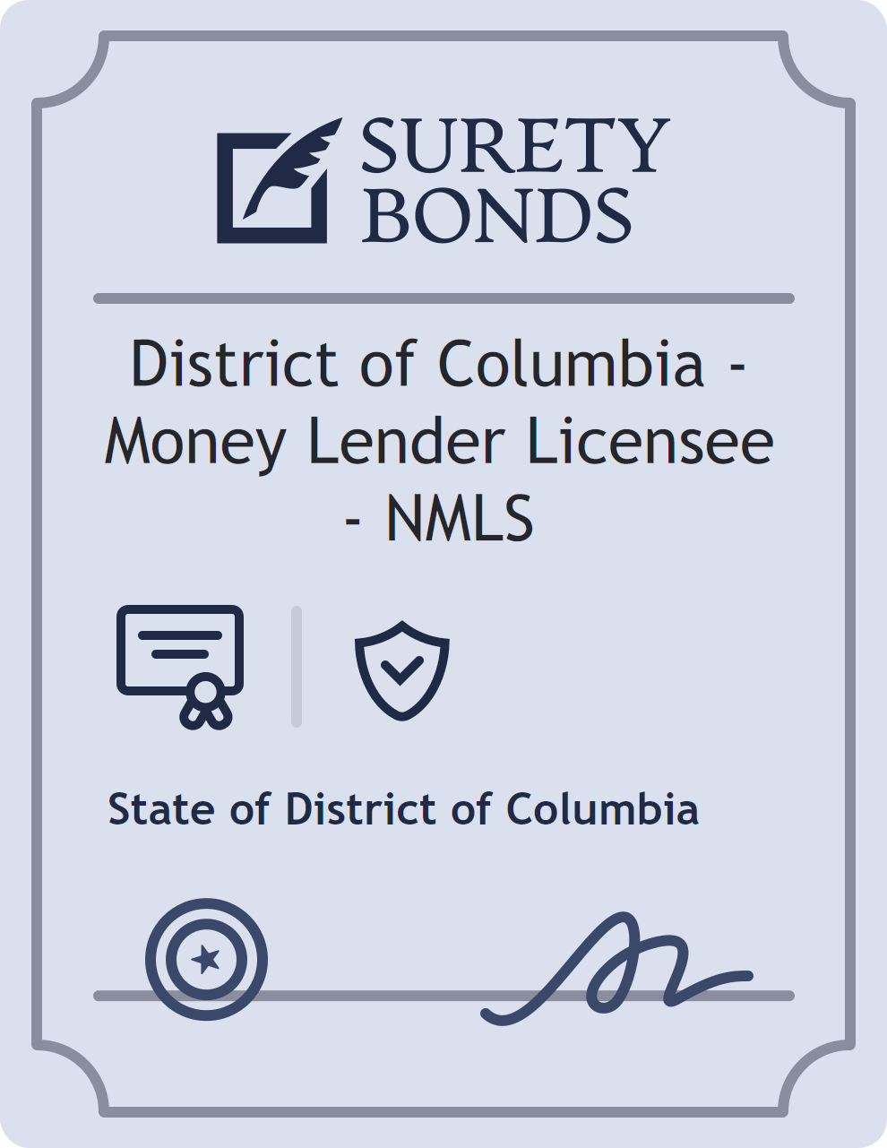 District of Columbia – Money Lender Licensee – NMLS Bond