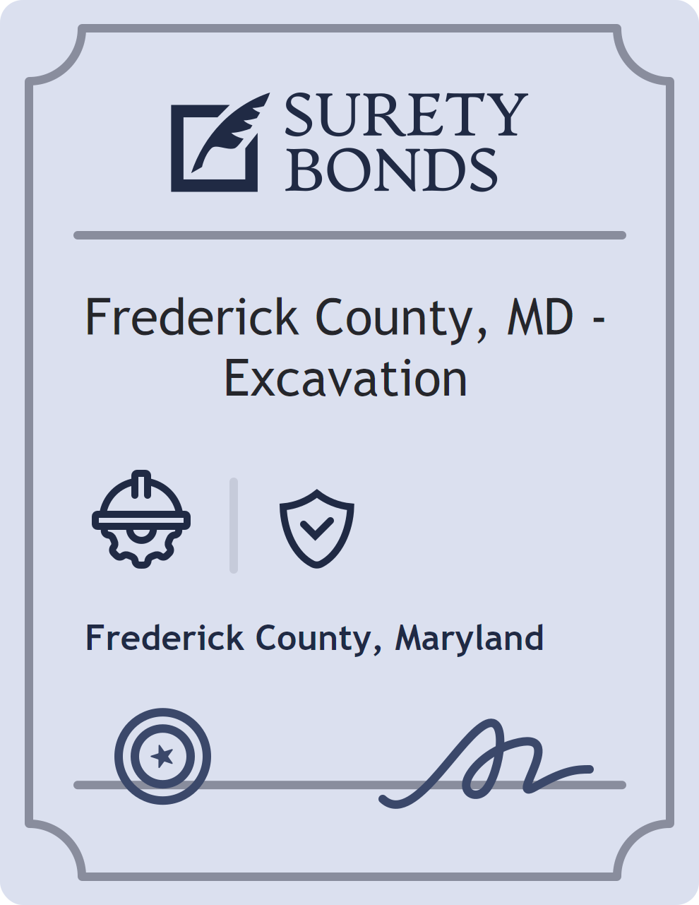 The Frederick County, MD – Excavation is classified as a Contractor Bonds with a $10,000 obligation in Maryland. Contractor Bonds are surety bonds required for individuals or businesses performing construction work. They guarantee that contractors will comply with building codes, licensing requirements, and contractual obligations. The bond provides financial protection to property owners and the public in cases of poor workmanship, regulatory violations, or unfinished work. The surety reviews financial strength, compliance history, and indemnity support before approving the obligation. Maintaining uninterrupted coverage for the entire 1 Year term is essential; lapses can trigger penalties, contract defaults, or license suspension in Maryland. Underwriters typically request financial statements, references, and proof of licensing before quoting terms so they can evaluate repayment capacity. Throughout the bond term, the principal must maintain accurate books, respond to regulator inquiries, and remediate any complaints to prevent a claim. Many authorities in Maryland also require renewal certificates 30 to 60 days in advance, and failure to provide proof can halt permitting or bid submissions. The $10,000 limit demonstrates to customers, partners, and oversight agencies that the bonded party maintains a reliable, surety-backed source of funds dedicated to ongoing compliance. The obligee for this bond is Frederick County.