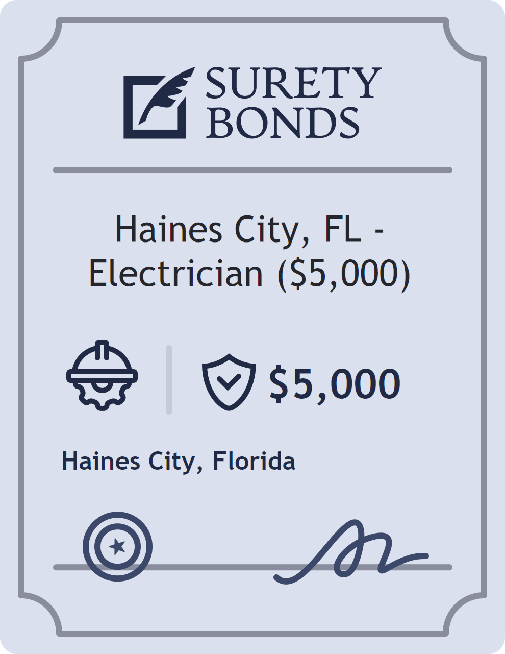The Haines City, FL – Electrician ($5,000) is classified as a Contractor Bonds with a $5,000 obligation in Florida. Contractor Bonds are surety bonds required for individuals or businesses performing construction work. They guarantee that contractors will comply with building codes, licensing requirements, and contractual obligations. The bond provides financial protection to property owners and the public in cases of poor workmanship, regulatory violations, or unfinished work. The surety reviews financial strength, compliance history, and indemnity support before approving the obligation. Maintaining uninterrupted coverage for the entire 1 Year term is essential; lapses can trigger penalties, contract defaults, or license suspension in Florida. Underwriters typically request financial statements, references, and proof of licensing before quoting terms so they can evaluate repayment capacity. Throughout the bond term, the principal must maintain accurate books, respond to regulator inquiries, and remediate any complaints to prevent a claim. Many authorities in Florida also require renewal certificates 30 to 60 days in advance, and failure to provide proof can halt permitting or bid submissions. The $5,000 limit demonstrates to customers, partners, and oversight agencies that the bonded party maintains a reliable, surety-backed source of funds dedicated to ongoing compliance. The obligee for this bond is Haines City.