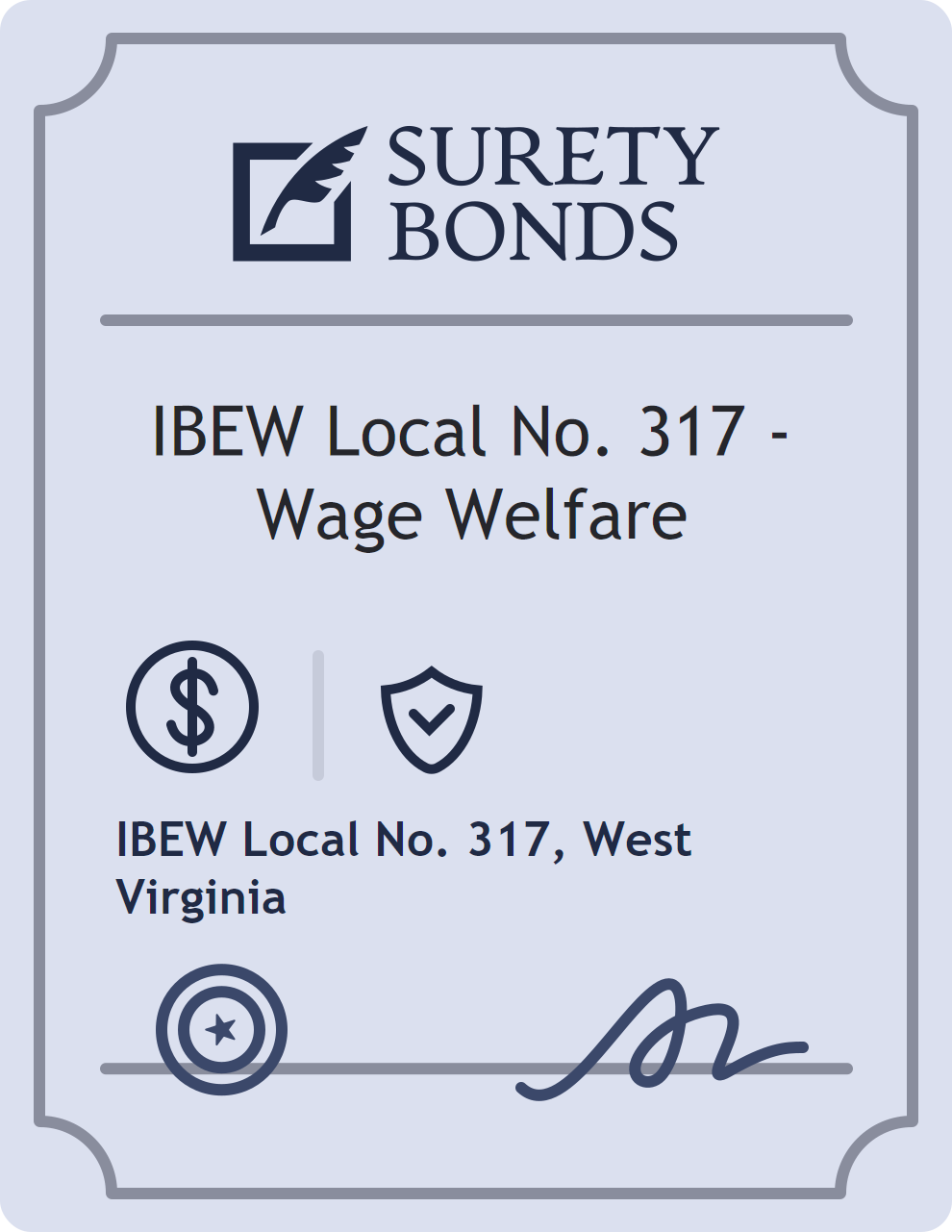 The IBEW Local No. 317 – Wage Welfare is classified as a Financial Services Bonds with a $10,000 obligation in West Virginia. Financial Services Bonds are surety bonds designed for businesses in the financial industry, including brokers, lenders, and other financial institutions. These bonds guarantee compliance with financial regulations and provide protection against misconduct or fraud. The surety reviews financial strength, compliance history, and indemnity support before approving the obligation. Maintaining uninterrupted coverage for the entire 1 Year term is essential; lapses can trigger penalties, contract defaults, or license suspension in West Virginia. Underwriters typically request financial statements, references, and proof of licensing before quoting terms so they can evaluate repayment capacity. Throughout the bond term, the principal must maintain accurate books, respond to regulator inquiries, and remediate any complaints to prevent a claim. Many authorities in West Virginia also require renewal certificates 30 to 60 days in advance, and failure to provide proof can halt permitting or bid submissions. The $10,000 limit demonstrates to customers, partners, and oversight agencies that the bonded party maintains a reliable, surety-backed source of funds dedicated to ongoing compliance. The obligee for this bond is IBEW Local No. 317.