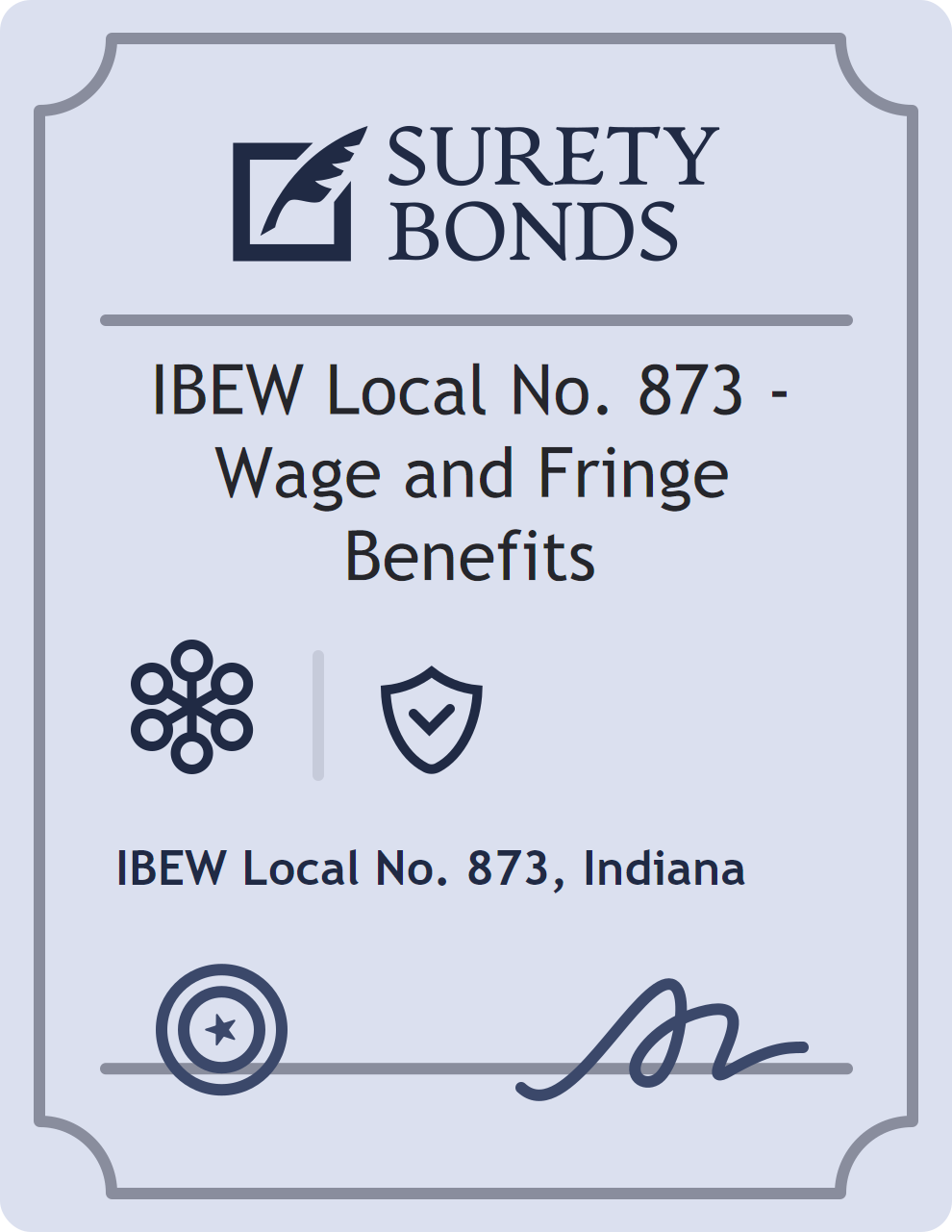 The IBEW Local No. 873 – Wage and Fringe Benefits is classified as a Miscellaneous Bonds with a $10,000 obligation in Indiana. Miscellaneous Bonds cover a wide range of non-standard surety bond requirements. They act as financial protection in cases where state or federal regulations require assurance of compliance and ethical conduct. The surety reviews financial strength, compliance history, and indemnity support before approving the obligation. Maintaining uninterrupted coverage for the entire 1 Year term is essential; lapses can trigger penalties, contract defaults, or license suspension in Indiana. Underwriters typically request financial statements, references, and proof of licensing before quoting terms so they can evaluate repayment capacity. Throughout the bond term, the principal must maintain accurate books, respond to regulator inquiries, and remediate any complaints to prevent a claim. Many authorities in Indiana also require renewal certificates 30 to 60 days in advance, and failure to provide proof can halt permitting or bid submissions. The $10,000 limit demonstrates to customers, partners, and oversight agencies that the bonded party maintains a reliable, surety-backed source of funds dedicated to ongoing compliance. The obligee for this bond is IBEW Local No. 873.