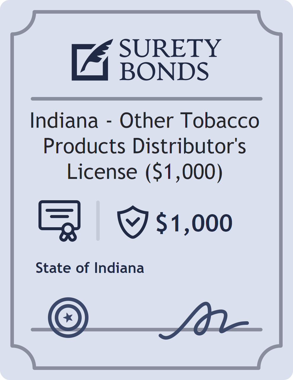 Indiana – Other Tobacco Products Distributor’s License ($1,000) Bond