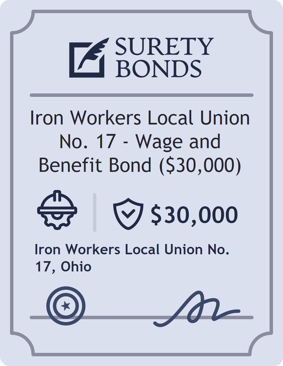 Iron Workers Local Union No. 17 – Wage and Benefit Bond ($30,000) Bond