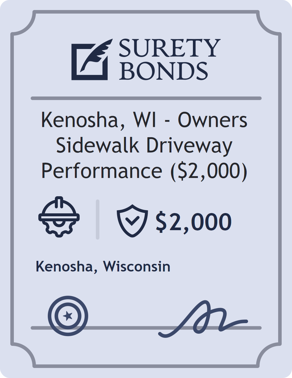 Kenosha, WI – Owners Sidewalk Driveway Performance ($2,000) Bond