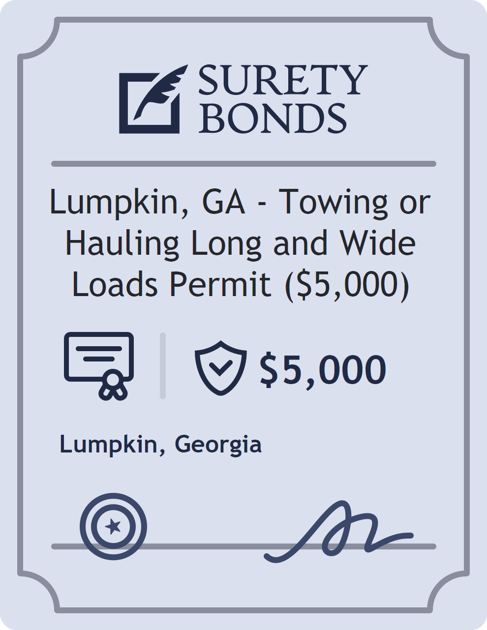 The Lumpkin, GA – Towing or Hauling Long and Wide Loads Permit ($5,000) is classified as a Professional License Bonds with a $5,000 obligation in Georgia. Professional License Bonds are surety bonds required for licensed professionals across various industries. They guarantee compliance with licensing laws and ethical standards, protecting clients and regulatory bodies from harm. The surety reviews financial strength, compliance history, and indemnity support before approving the obligation. Maintaining uninterrupted coverage for the entire 1 Year term is essential; lapses can trigger penalties, contract defaults, or license suspension in Georgia. Underwriters typically request financial statements, references, and proof of licensing before quoting terms so they can evaluate repayment capacity. Throughout the bond term, the principal must maintain accurate books, respond to regulator inquiries, and remediate any complaints to prevent a claim. Many authorities in Georgia also require renewal certificates 30 to 60 days in advance, and failure to provide proof can halt permitting or bid submissions. The $5,000 limit demonstrates to customers, partners, and oversight agencies that the bonded party maintains a reliable, surety-backed source of funds dedicated to ongoing compliance. The obligee for this bond is Lumpkin.