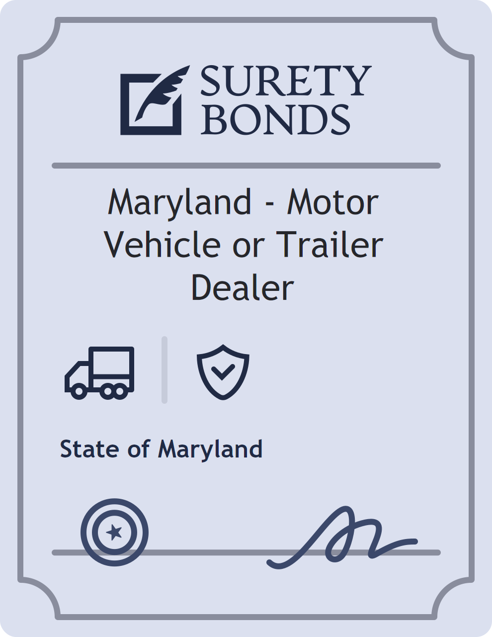 Maryland – Motor Vehicle or Trailer Dealer Bond
