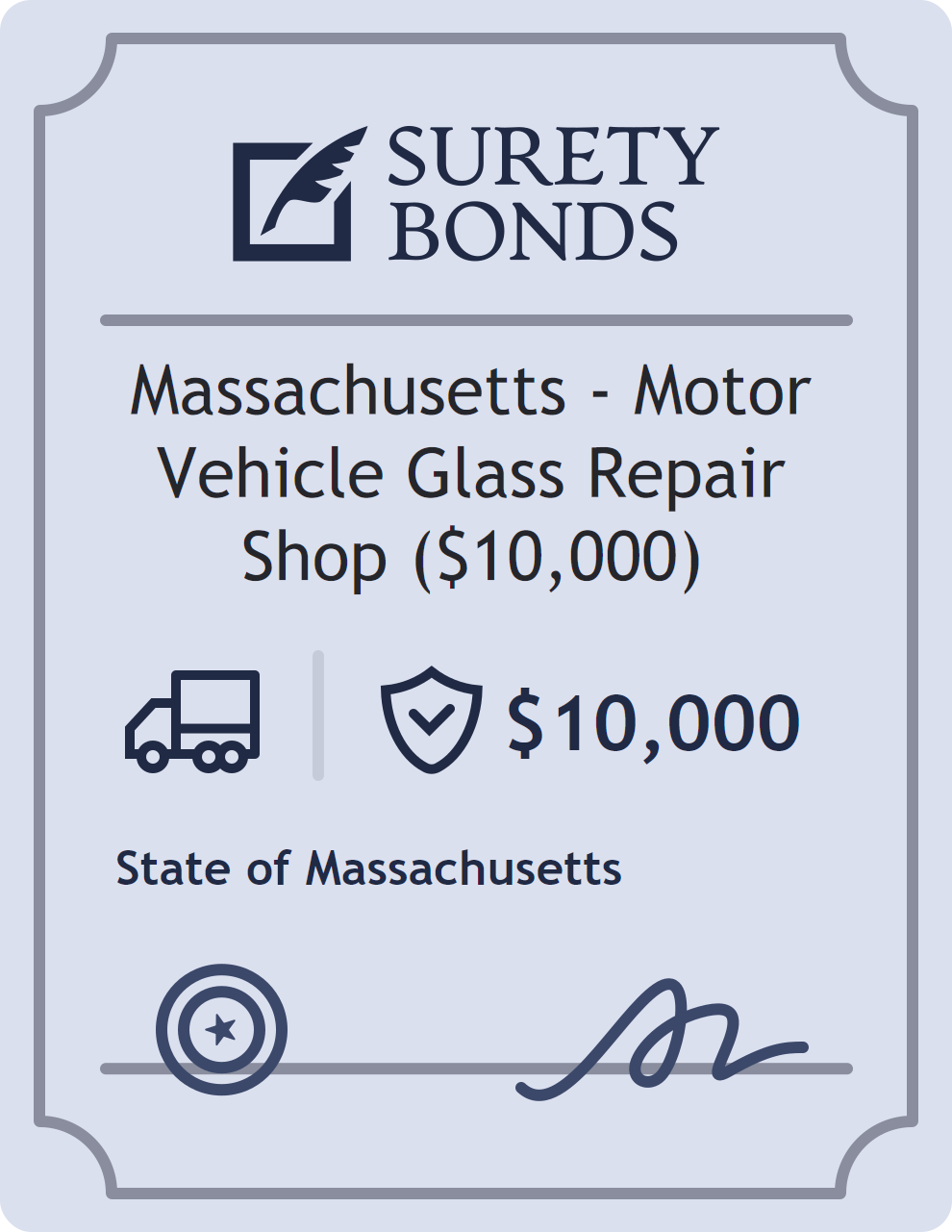 Massachusetts – Motor Vehicle Glass Repair Shop ($10,000) Bond