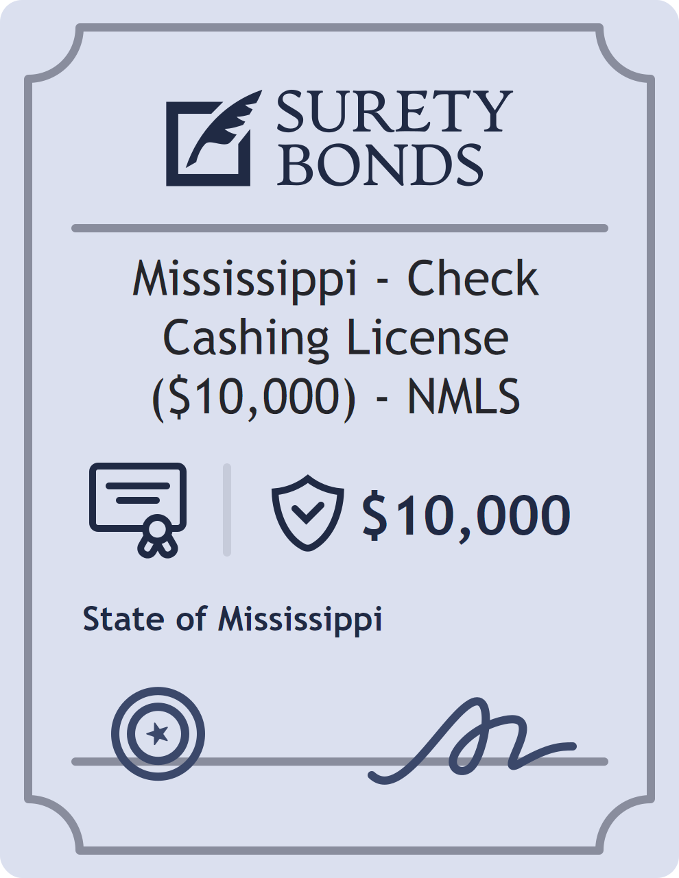 Mississippi – Check Cashing License ($10,000) – NMLS Bond