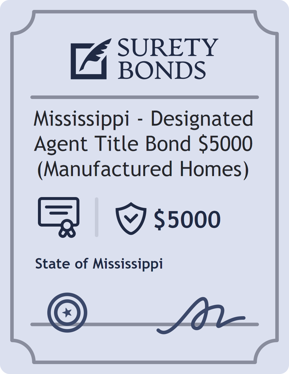 Mississippi – Designated Agent Title Bond $5000 (Manufactured Homes) Bond