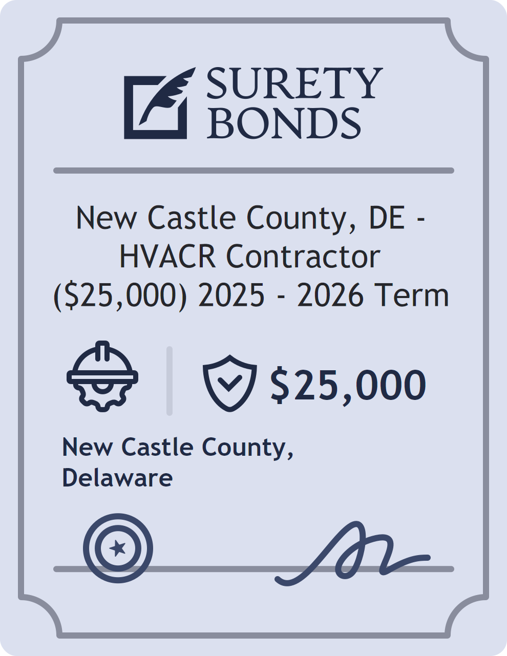 New Castle County, DE – HVACR Contractor ($25,000) 2025 – 2026 Term Bond