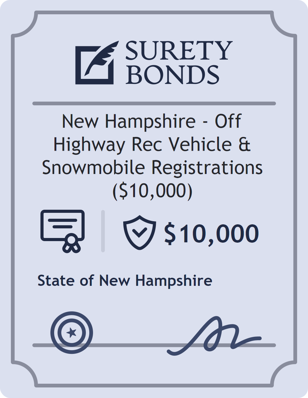 New Hampshire – Off Highway Rec Vehicle & Snowmobile Registrations ($10,000) Bond