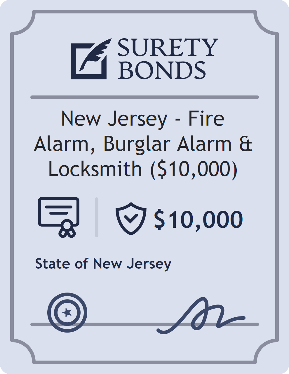 New Jersey – Fire Alarm, Burglar Alarm & Locksmith ($10,000) Bond