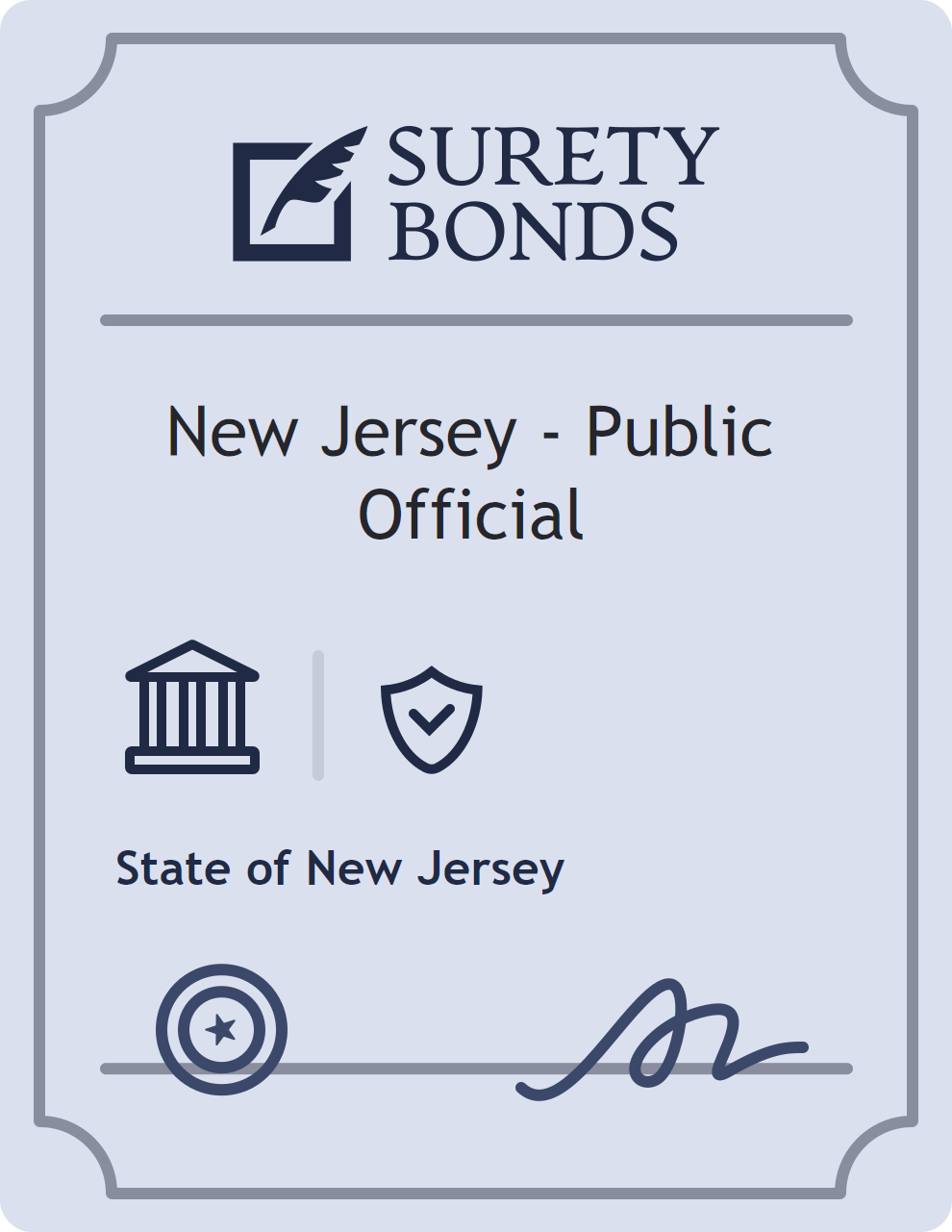 The New Jersey – Public Official is classified as a Government/Public Official Bonds with a $10,000 obligation in New Jersey. Government/Public Official Bonds are surety bonds that ensure elected and appointed officials perform their duties faithfully and in accordance with the law. These bonds provide financial protection in cases of misconduct, negligence, or misuse of authority by public officials. The surety reviews financial strength, compliance history, and indemnity support before approving the obligation. Maintaining uninterrupted coverage for the entire 1 Year term is essential; lapses can trigger penalties, contract defaults, or license suspension in New Jersey. Underwriters typically request financial statements, references, and proof of licensing before quoting terms so they can evaluate repayment capacity. Throughout the bond term, the principal must maintain accurate books, respond to regulator inquiries, and remediate any complaints to prevent a claim. Many authorities in New Jersey also require renewal certificates 30 to 60 days in advance, and failure to provide proof can halt permitting or bid submissions. The $10,000 limit demonstrates to customers, partners, and oversight agencies that the bonded party maintains a reliable, surety-backed source of funds dedicated to ongoing compliance. The obligee for this bond is State of New Jersey.