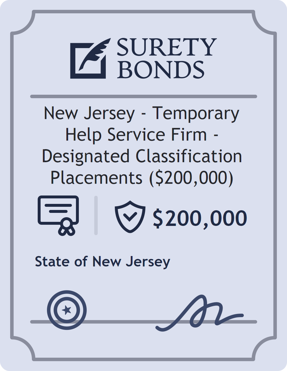 New Jersey – Temporary Help Service Firm – Designated Classification Placements ($200,000) Bond