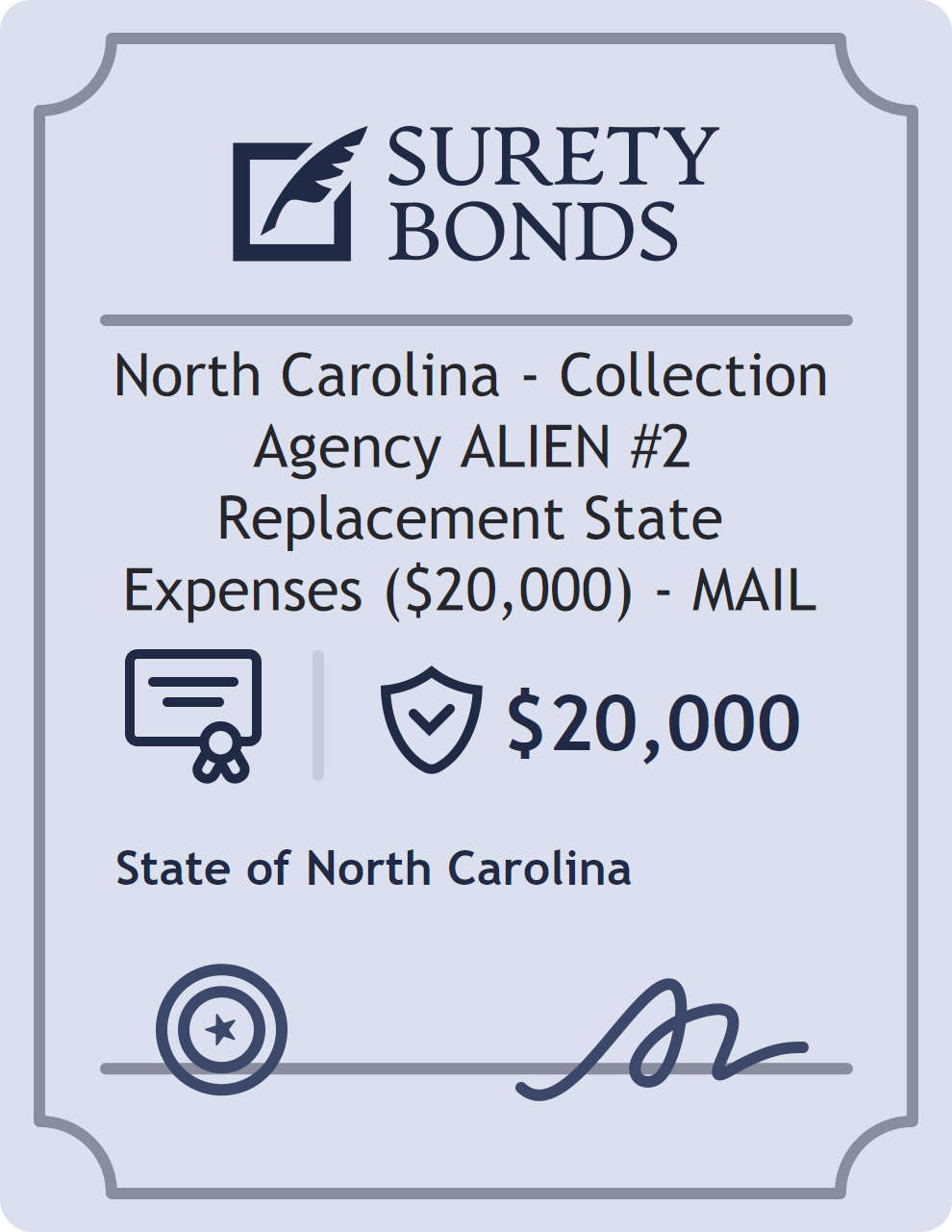 North Carolina – Collection Agency ALIEN #2 Replacement State Expenses ($20,000) – MAIL Bond