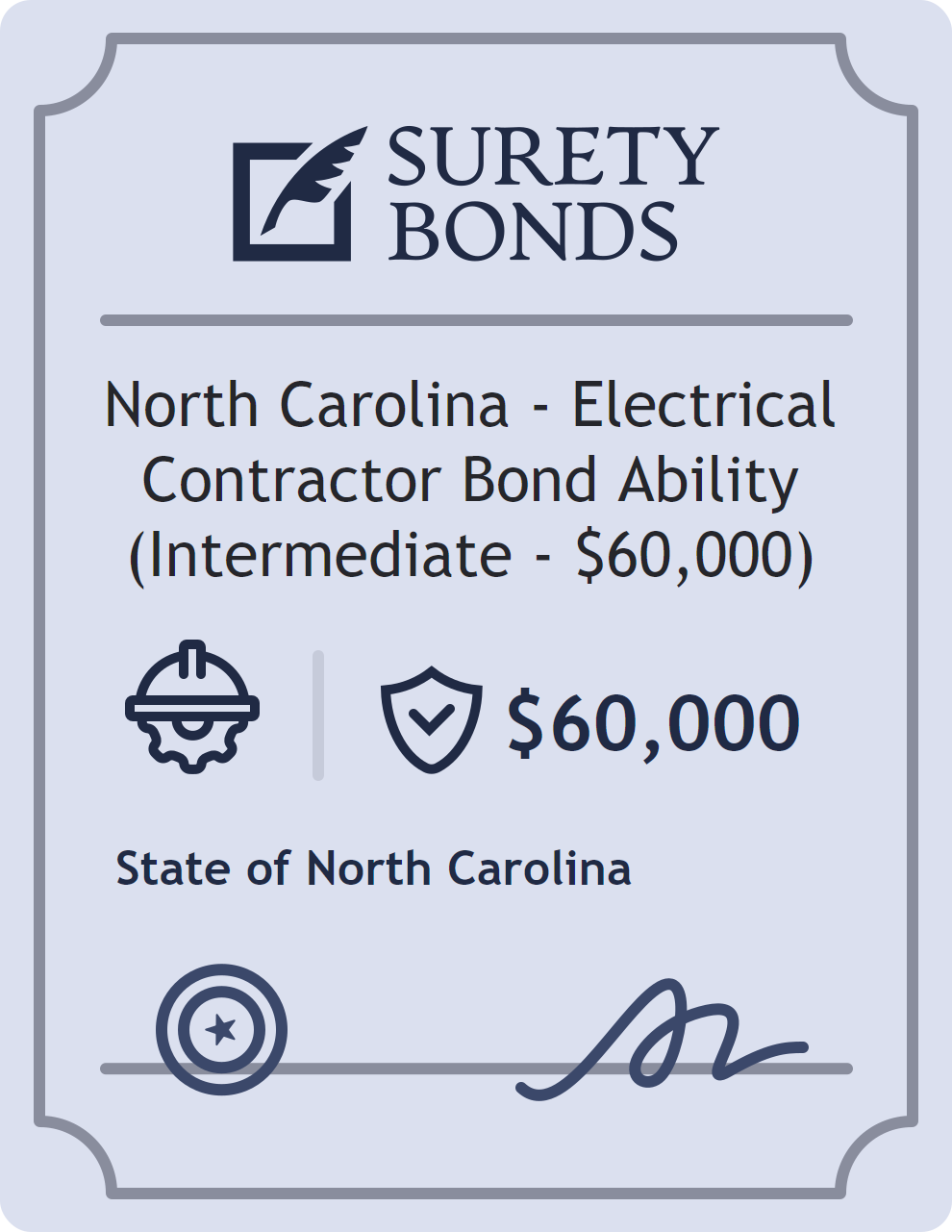 North Carolina – Electrical Contractor Bond Ability (Intermediate – $60,000) Bond