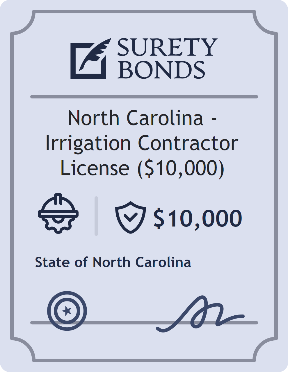 North Carolina – Irrigation Contractor License ($10,000) Bond