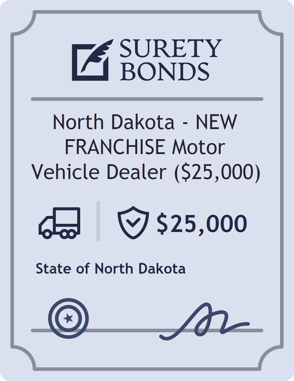 North Dakota – NEW FRANCHISE Motor Vehicle Dealer ($25,000) Bond