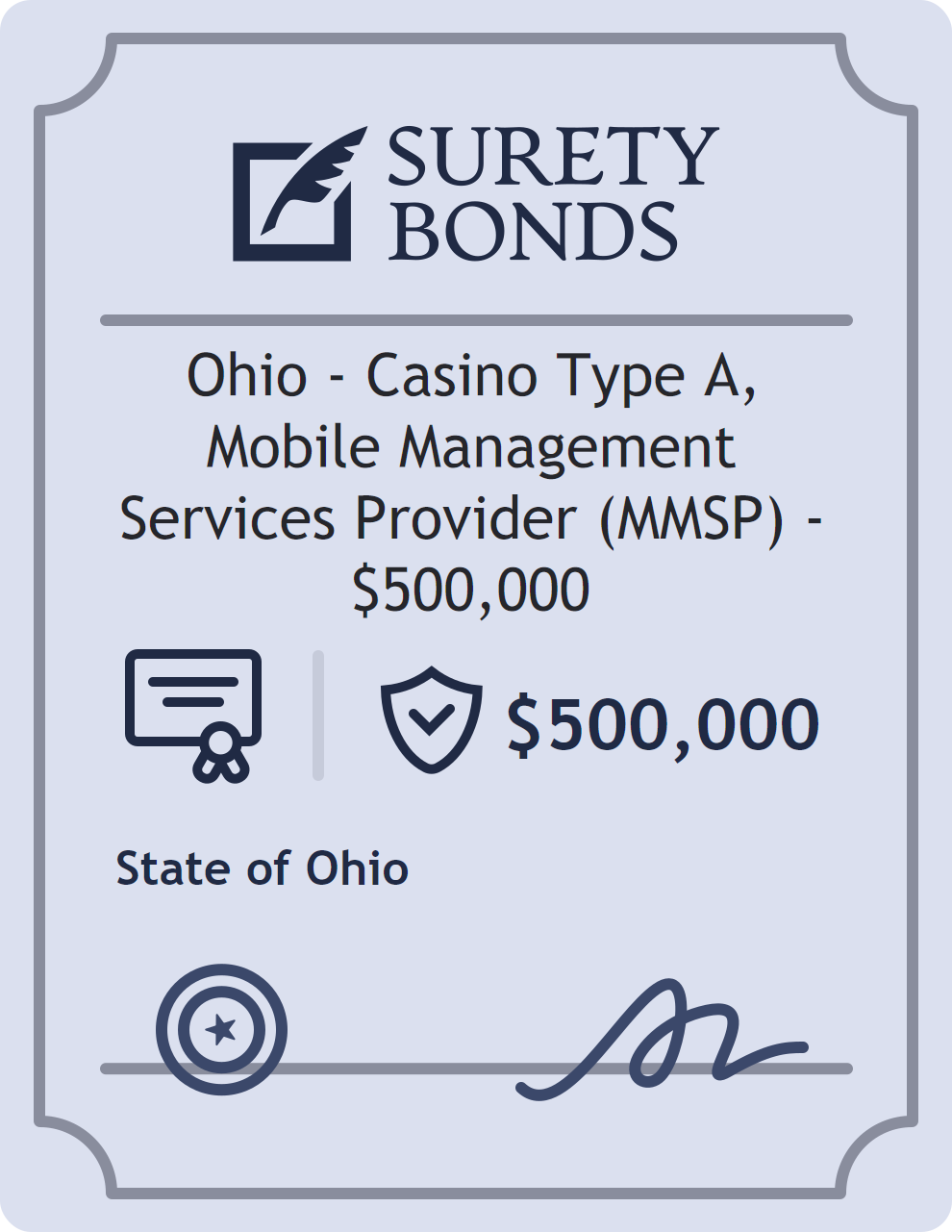 Ohio – Casino Type A, Mobile Management Services Provider (MMSP) – $500,000 Bond