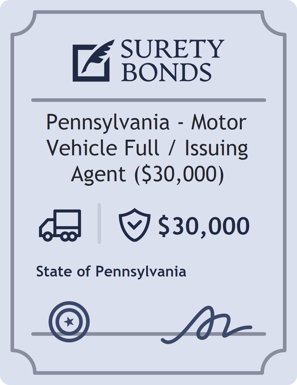 Pennsylvania – Motor Vehicle Full / Issuing Agent ($30,000) Bond