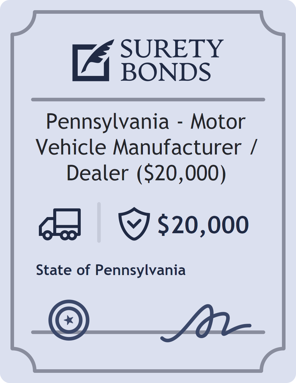Pennsylvania – Motor Vehicle Manufacturer / Dealer ($20,000) Bond