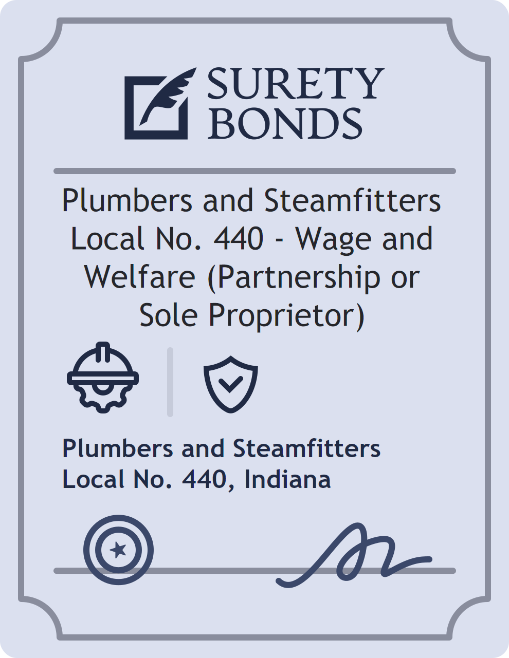 The Plumbers and Steamfitters Local No. 440 – Wage and Welfare (Partnership or Sole Proprietor) is classified as a Contractor Bonds with a $10,000 obligation in Indiana. Contractor Bonds are surety bonds required for individuals or businesses performing construction work. They guarantee that contractors will comply with building codes, licensing requirements, and contractual obligations. The bond provides financial protection to property owners and the public in cases of poor workmanship, regulatory violations, or unfinished work. The surety reviews financial strength, compliance history, and indemnity support before approving the obligation. Maintaining uninterrupted coverage for the entire 1 Year term is essential; lapses can trigger penalties, contract defaults, or license suspension in Indiana. Underwriters typically request financial statements, references, and proof of licensing before quoting terms so they can evaluate repayment capacity. Throughout the bond term, the principal must maintain accurate books, respond to regulator inquiries, and remediate any complaints to prevent a claim. Many authorities in Indiana also require renewal certificates 30 to 60 days in advance, and failure to provide proof can halt permitting or bid submissions. The $10,000 limit demonstrates to customers, partners, and oversight agencies that the bonded party maintains a reliable, surety-backed source of funds dedicated to ongoing compliance. The obligee for this bond is Plumbers and Steamfitters Local No. 440.