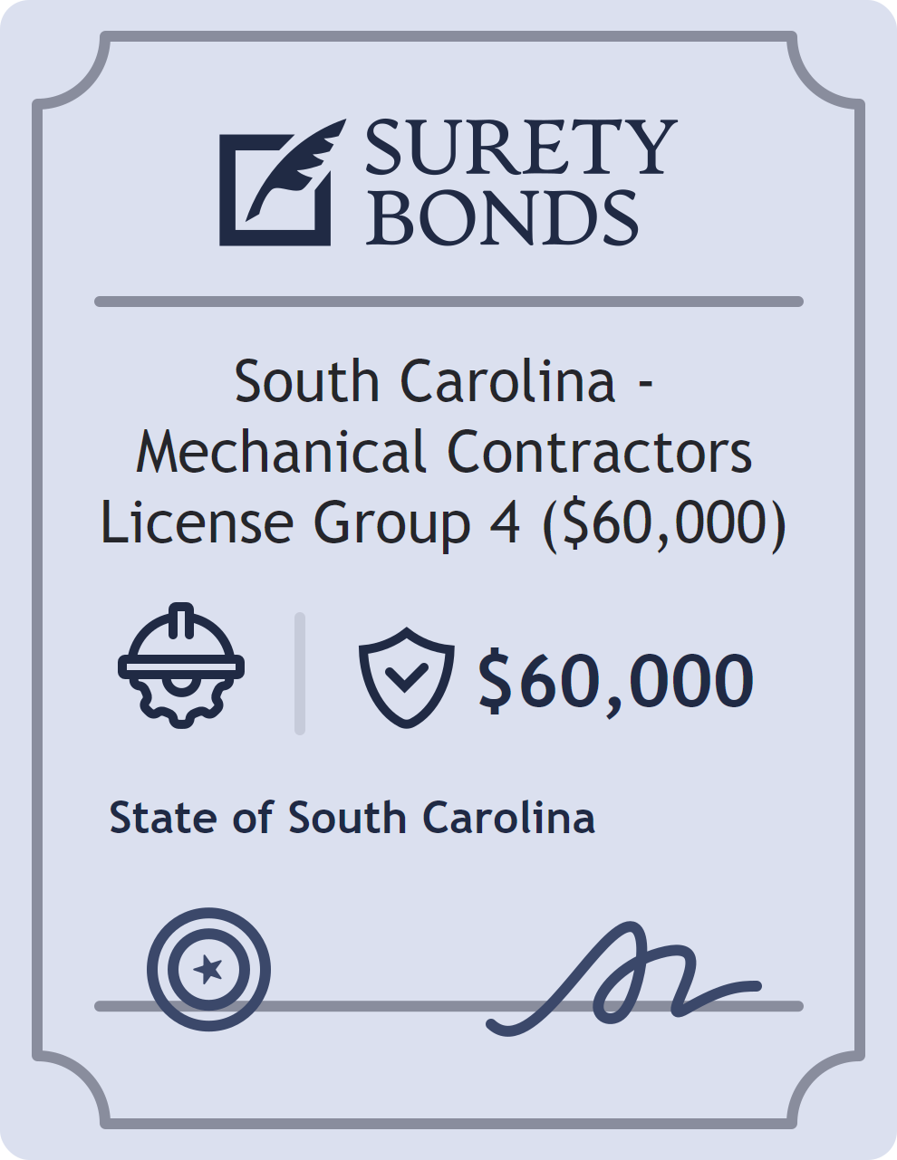 South Carolina – Mechanical Contractors License Group 4 ($60,000) Bond