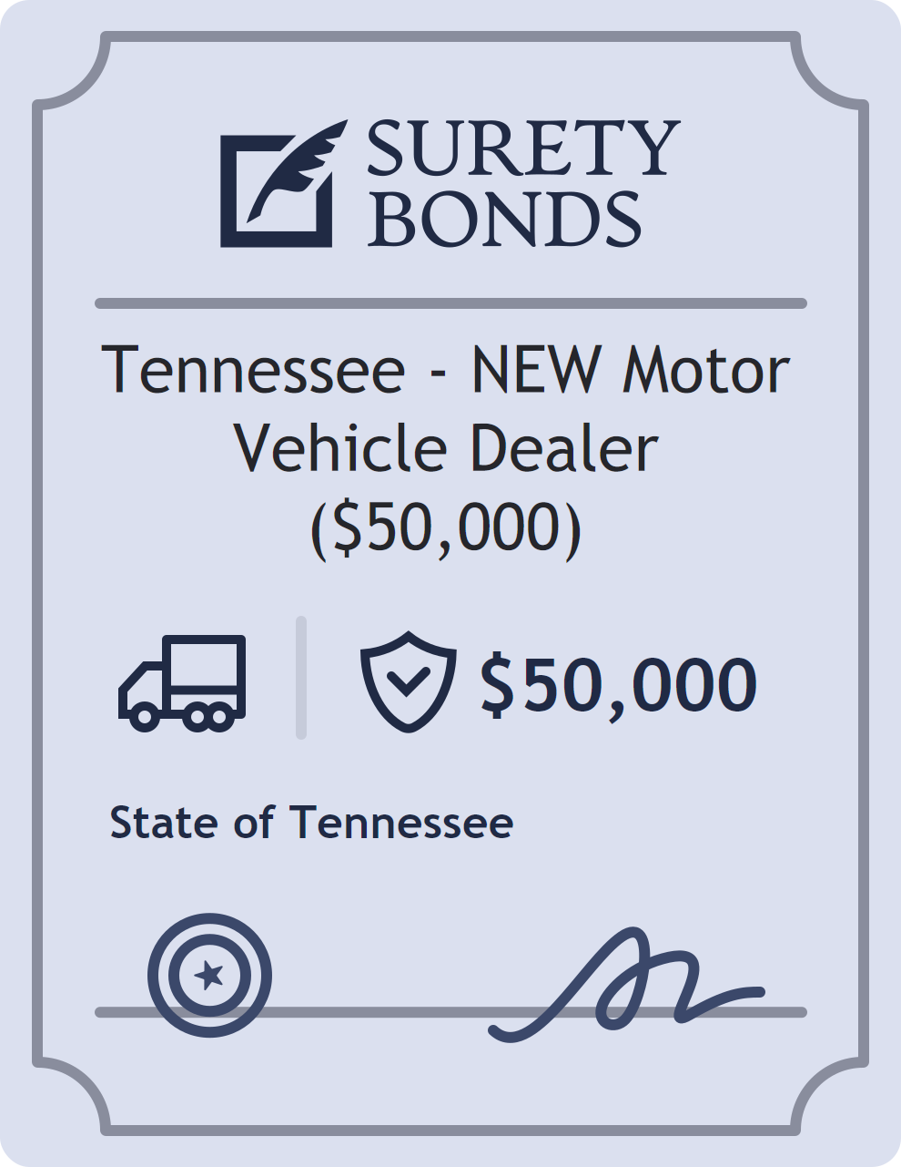 Tennessee – NEW Motor Vehicle Dealer ($50,000) Bond