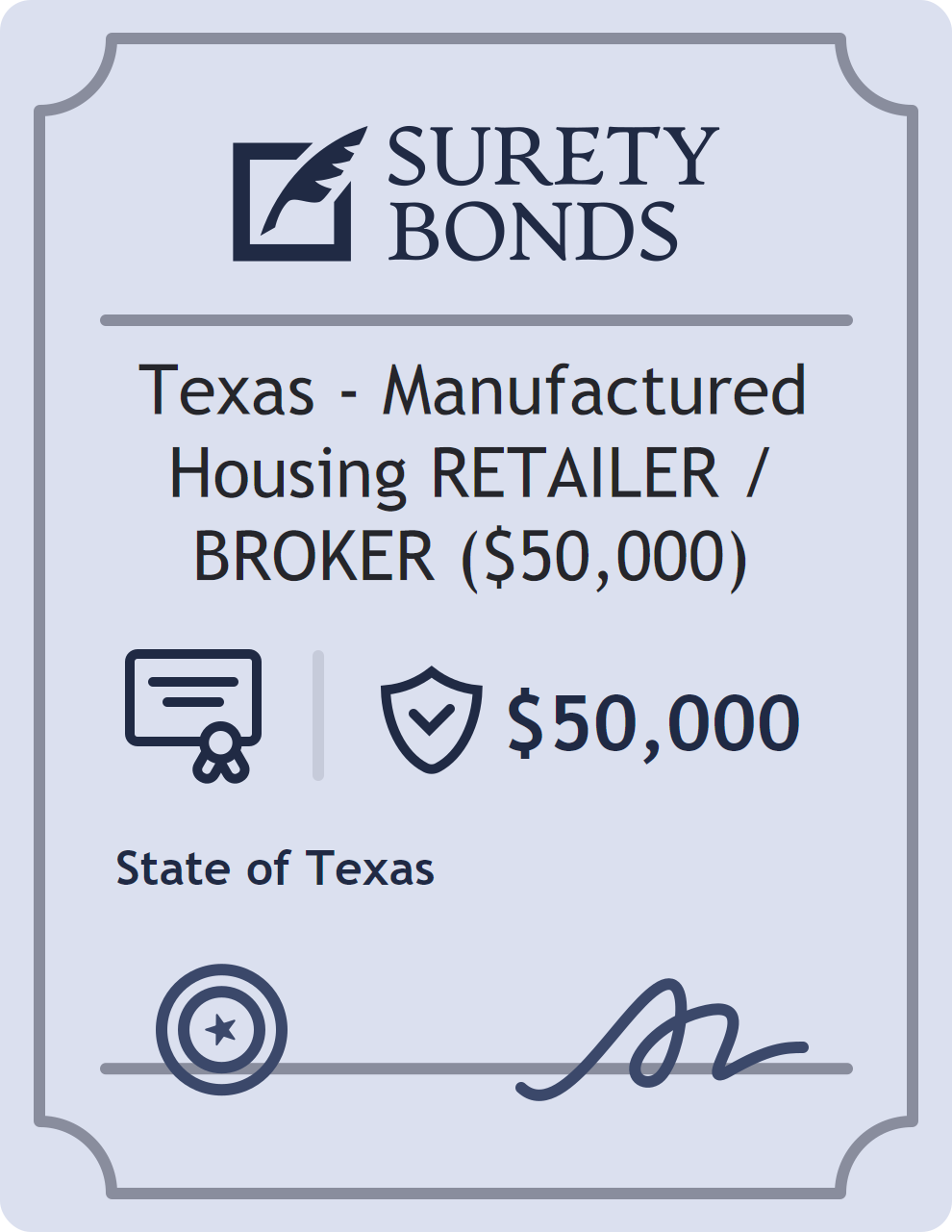 Texas – Manufactured Housing RETAILER / BROKER ($50,000) Bond